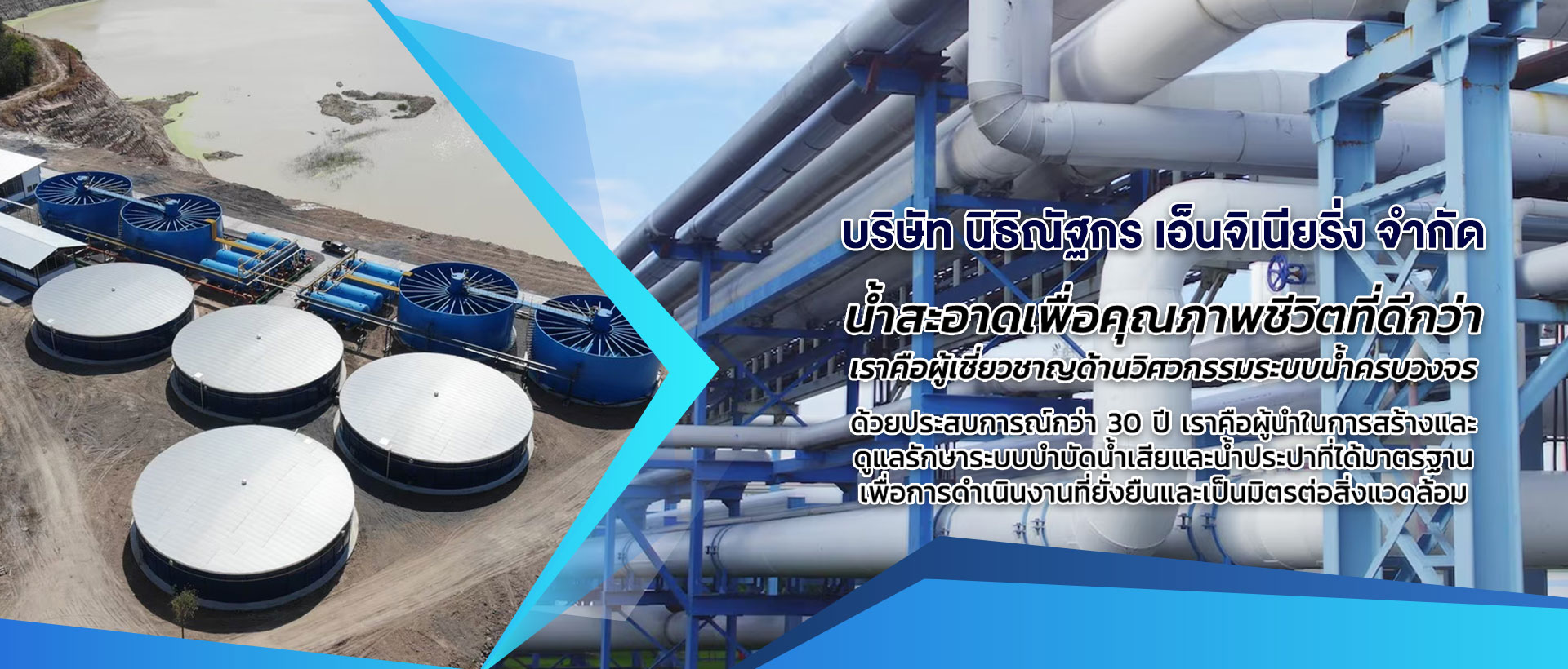 บริษัท นิธิณัฐกร เอ็นจิเนียริ่ง จำกัด ก่อตั้งขึ้นเมื่อ พ.ศ. 2523 ด้วยความมุ่งมั่นที่จะเป็นผู้นำด้านวิศวกรรมระบบน้ำ เราได้สั่งสมประสบการณ์และความเชี่ยวชาญมาอย่างต่อเนื่องเพื่อตอบสนองความต้องการของลูกค้าในทุกอุตสาหกรรม เราเชื่อมั่นว่าการจัดการระบบน้ำที่มีประสิทธิภาพ คือหัวใจสำคัญของการพัฒนาองค์กรที่ยั่งยืนและมีส่วนร่วมในการดูแลโลกของเราและด้วยความมุ่งมั่นในคุณภาพและประสิทธิภาพ เราจึงได้รับความไว้วางใจจากลูกค้าทั้งหน่วยงานภาครัฐและภาคเอกชนมากมาย นอกจากนี้ ระบบการทำงานของเรายังได้รับการรับรองตามมาตรฐานสากล ISO 9001:2015 ซึ่งเป็นเครื่องยืนยันถึงกระบวนการบริหารงานคุณภาพสูงสุด และความรับผิดชอบในทุกขั้นตอนที่เราให้บริการ